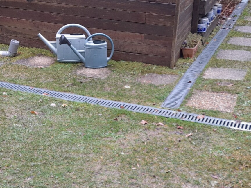 Anne en ik behoren tot op heden tot de weinigen waar er kleine of geen schade is. Hopelijk blijft dat ook zo. Want het einde van de tunnel is nog niet in zicht. Météo France geeft vanaf vanavond weerom flinke windstoten tot en met 120 km/uur en veel, heel veel regen. De laatste dagen kregen we gemiddeld 5 liter per vierkante meter en vanaf vanavond verwachten de weervoorspellers nog meer neerslag. Onze tuin kan het water niet meer opvangen. Het stroomt via vele kleine kanalen en geulen de berg af. Onze woning is gelukkig beschermd. Een vijftiental jaren geleden liep het water door onze garage naar buiten. Gelukkig waren wij beiden er vlug bij en konden de vloed uit ons huis houden. Met borstels, dweilen en emmers hebben we een hele nacht gezwoegd in de garage om ons huisje droog te houden. Toen heb ik, onmiddellijk na die zondvloed, grondgoten gegraven. Zij vangen het vele water nu op in het bos hogerop en onmiddellijk achter onze woning. Deze twee goten hebben hun dienst bewezen de laatste dagen. Zij hebben de massa's water die de berg afkwamen, opgevangen en afgeleid naar de lager gelegen weide naast ons huisje. Ze zullen ook het komende regenwater weer opvangen en wegleiden van het huis. Het is wel beangstigend als je ziet wat een waterstroom door de goten loopt. Het geluid alleen al doet je kippenvel krijgen.